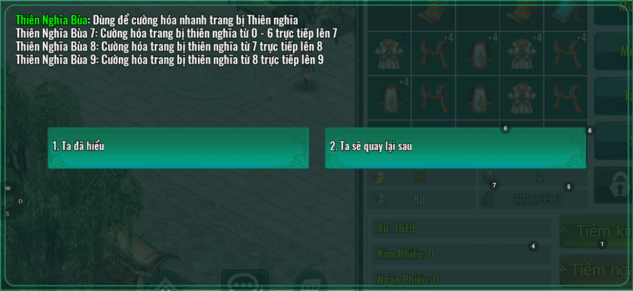 | Thiên Nghĩa Bùa 9: Cường hóa trang bị Thiên Nghĩa từ 8 lên 9. | ![]() |